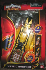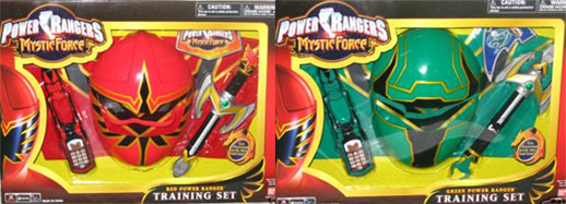 | ** [91466-91467] Power Ranger Training Set - Comes with mask, cape, badge, Magi Staff, and exclusive ranger-color Mystic Morpher. Available in Red and Green. in Japan, the 'morpher' [MagiPhone] was only repainted to purple [Wolzaphone] and white [Mother-version]. Ranger-colored Morphers also avaliable in Electronic Hand Gear. These morphers are smaller than the regular morpher. |