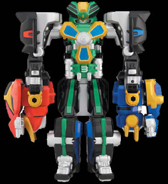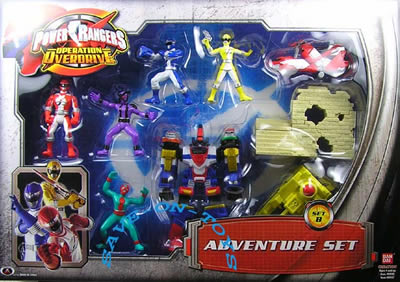 * Adventure Set - Comes with Red, Blue, and Yellow Ranger, repainted Deltamax Megazord and green Krybot. |