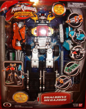 * * DualDrive Megazord - Four auxiliary zords (Drill Driver, Shovel Driver, Cement Driver, and Crane Driver) can combine with the DriveMax Megazord to make the Super DriveMax Megazord. Includes black version of the Dump Driver. |