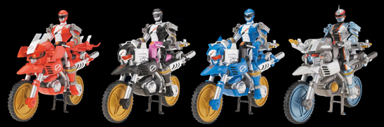 * [29056-29059] ZordTek Cycle - Red, Black, Blue, and Mercury Rangers. The Zord bike piece also can be used as an extra head for the DualDrive and DriveMax Megazords. |