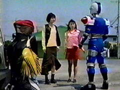 | Zonnette looks longingly at the Earth and pinning over Red Racer. Ritchihiker approaches her and whispers to her. She thinks to herself and nods to him. She then shouts to the others. Their attention is drawn | to him but Ritchihiker is embrassed. He coughs and says he is off on another mission to get the Carranger and Signalman. He runs out in a hurry out of the BB Saloon. Meanwhile on Earth, the Carranger |
