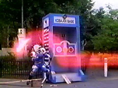 | Signalman's head as he repaired his base; and reached the monster in a field. The Carranger then arrived where he is. He disappeared again and Red shot him with his Auto Blaster. He appeared and then | disappeared. Yellow suggests combining the Navick Shot, so they make the Navick Blaster and defeat the monster. He grows huge after eating the imo-youkan and RV Robo is formed. Sirender arrives to help. |