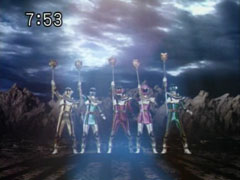 | Snowjel awakens the power within the five. Five flower shapes enter them and they transform instantly. she says power depends on how much courage they have and wishes them the best. The fish's mouth opens and they run out. | Zee beats up Shine and he ends on the floor. Wolzard teases him and leaves. Zee smashes Hikaru out of armor and gets his weapon to his neck. Blurates appluads his comrade. The Magiranger arrive to save the day. |