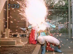 He blasts at him, but Yellow's is what counts. Cyclops is defeated and the mirror world collapses around him. He is back, out of uniform and Kai congrulates him. Their siblings are back as well. Tsubasa gives Makito a big hug. Tsubasa admits he now knows the hardship of the older brother. Makito feels the burden has lighten. Kai boasts that he took his advice. Tsubasa shakes it off.