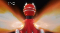 | Jan calls for the Super GekiClaw. "Super Beast-on!" He transforms into Super GekiRed. | Everyone covers their eyes at the blinding light. All the city is returned to normal and Kata wonders what caused it. |