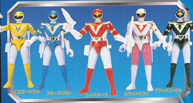 Jetman figures - Yellow Owl, Blue Swallow, Red Hawk, White Swan and Black Condor; Each figure came with weapons and sold seperately. |