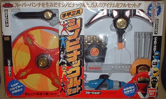 Shinobi Knuckle -The Kakuranger's five weapons and Shinobi Knuckle. |