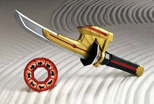 Daizanto - Child-size version of ShinkenRed's main weapon. Can flip and turn into the cannon to fit six Hiden Disks. |