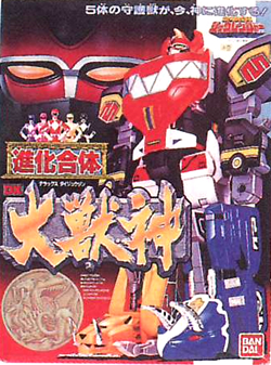 Gouryuujin - Smaller version of Gouryuujin, came with SaberTiger and Triceratops feet that came apart. Also included was a Dragon Ranger figure. |