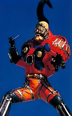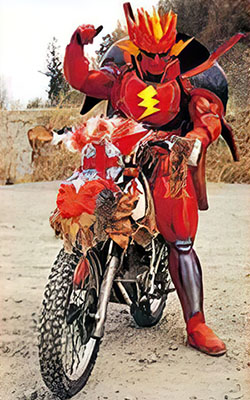 Electrovolt is an electrical monster, he and Elgar went to down to Earth to destroy the Rangers together. He rode his own motrocycle and was destroyed by Turbo Megazord and Robo Racer.