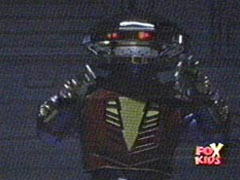 | Finally, Leo is confronted in the woods by Psycho Red. Although he manages to morph, he is still no match for the psychotic bot. |