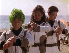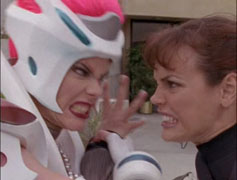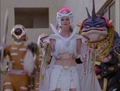 She meets the others and they all head for town, where Ransik is leading an attack. The four powerless Rangers are beaten up in battle. |