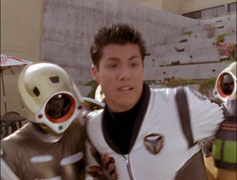| He takes off his helmet, revealing his remarkable resemblance to Alex. Jen is in shock over this, and is nearly brought to tears. The other Rangers soon arrive, and they all gasp when they see him. Wes decides to split. |