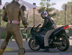 The Cyclobots are busting up Jen, but she is saved just in time by a mysterious stranger on a bike. |
