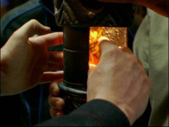 The Fearcats grab Ronny while Moltor fights the others. Ronny breaks free and fights the two. They manage to grab her and Will notices. The knight becomes the sword and Will is about to use it, when Moltor grabs him. Moltor teleports Will and the sword away. |