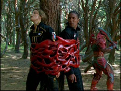 Ronnie and Will are held captive on a tree in a forest. Ronnie figures they want their power. Moltor encases the Excelisor sword as well. Benglo says they only needed the Yellow Ranger. Moltor wants to turn the knight evil. Will listens in and hears that Moltor will destroy him. |