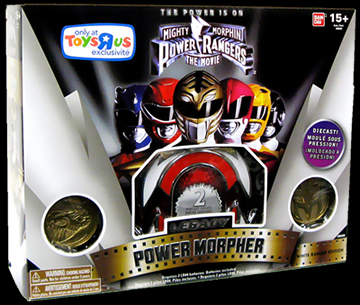 [96606] Legacy Power Morpher: Collectors can own a deluxe diecast version of the Mighty Morphin Power Rangers' Power Morpher. Packaging is reminiscent of the original 1993 packaging. It comes with five Power Coins, lights and sound and can fit on any adult belt. Press the back to unsnap the coins. There was three versions created as the first one was faulty. It was exclusive to Toys R Us.