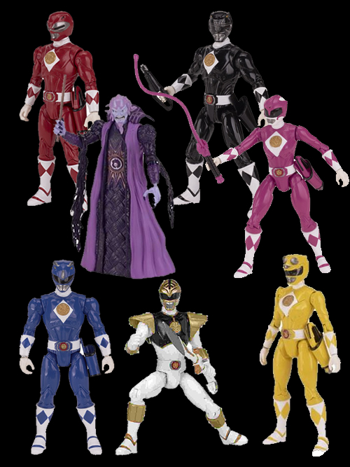 [96971-96978] Legacy Movie Edition Figures Red, Pink, and Black Rangers and Ivan Ooze figures released first. White, Blue and Yellow Ranger figures released after that. Red Ranger comes with extra Power Scope helmet, Pink comes with Thunderwhip, Ivan comes with flute, Yellow comes with Power Beam helmet, White comes with Saba and Blue comes with Stega Stinger.