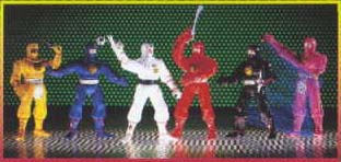 | * [2471-2476] 5.5 inch Ninja Rangers - six Ninjas with unique ninja action features. Kick Action Yellow, Disc Firing Blue, Twirling Action White, Sword Slashing Red, One-Two Punch Black, and Net Launching Pink Ninja Ranger. |