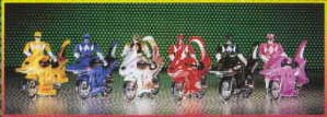 | ** * [2481-2486] Shark Cycles - includes 4 inch Ranger figure. Came out July 1995. They are based on the Kakuranger bikes. |