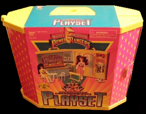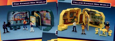 | * Power Rangers Girl's Mini Worlds - The Pink Ranger Mini World came in a teal case with bedroom, Juice Bar and other scenes; along with Kimberly, Rocky, and Tenga figurines and accessories. The Yellow Ranger Mini World included Aisha, Adam and Rita Replusa figures with bedroom and other scenes and accessories. |