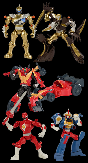 * [43024-43029] Mixx N Morph Deluxe Packs - Buy different figures and mix and match the parts. Three different sets with two figures in each. Dino Charge Gold Ranger and Ptera Zord; Mighty Morphin Red Ranger and Ape Zord; Super Mega Red Ranger and Turbo Falcon Megazord. |