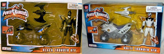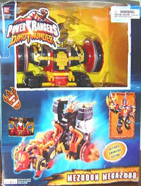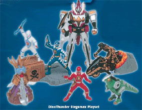 | * [91242] Dino Thunder Stegamax Playset - Includes Stegazord, White Triptoid, Blue, Red Ranger, Parasaurzord, Black Ranger on non-show Black Raptor Cycle and Abaranger's Voffa who appeared in the NS/DT teamup. |