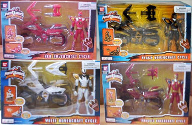 | * [90041] 12" Triassic Ranger & Raptor Cycle - Ranger comes with Conner's face and removable helmet. * [10816] Deluxe Red Raptor Mega Cycle - Fits the 12" rangers. |