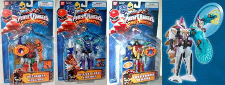 | * [10812-10814] Mega Battlized Talking Power Ranger - One Triassic transforms into the Mezodon Megazord and another Triassic comes with Conner's face (which appears on the show) and White comes with Trent's face. |