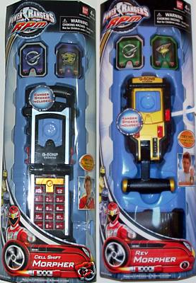 ** [31101-31102] Cell Shift Morpher and Rev Morpher - Cell Shift Morpher is the phone device the Eagle, Lion, and Bear Rangers use to morph. It comes with the Lion and Bear Engine Cell Key and Morph Cell Chip. The Rev Morpher is the morphing item for the Wolf and Shark Rangers and comes with the Shark Engine Cell Key and Morph Cell Chip. Different version from original Japanese version. |