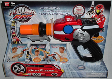 ** [31106] Nitro Blaster - The Nitro Blaster morphs from Blaster mode to Sword mode and the end tip glows in the dark (dimly). You can unlock sound effects through the interactive game play sounds. Different version from original Japanese version. |