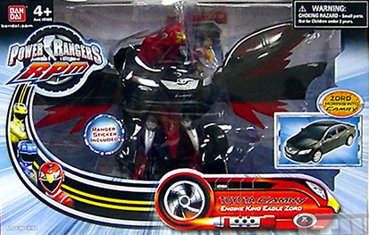 [31066-31067] Transforming Beast Zords - The Chrome Prowler Tiger Zord transforms into a fuel-enficient hybrid chrome Toyota Prius and the red Engine King Eagle Zord transforms into a black Toyota Camry (seventh generation model). |