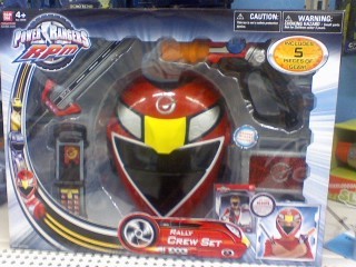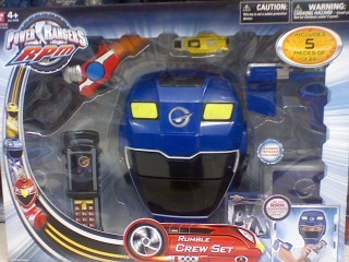 Rally and Rumble Crew Sets - The Rally Crew Set includes Ranger Red mask, Cell Shift Morpher, Street Saber, Nitro Blaster, Ranger Red trading card and buckle card. The Rumble Crew Set includes Ranger Blue mask, Cell Shift Morpher, Nitro Blaster, buckle card, Turbo Cannon, Ranger Blue trading card, and Zip Charger. |