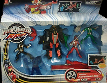 | Track Adventure Set - Play with High Octane Megazord, Ranger Red, Ranger Blue, Ranger Yellow, General Shifter, weapon and post for your own high-octane adventures. |