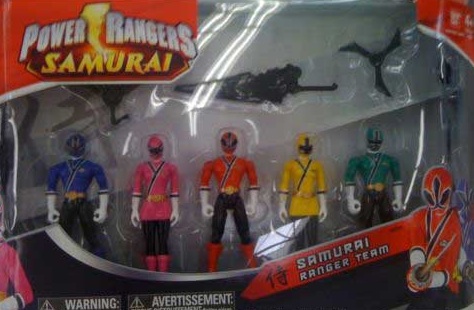 Five Rangers of colors Blue, Pink, Red, Yellow and Green, comes with unique weapons for each figure. The figures are almost four inches tall each. |