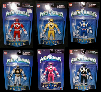 * [4389] Power Rangers Heroes Series 3 - Red, Yellow, Blue, White, Pink and Black Rangers. The female figures were unique that they had busts instead of masculine chests.